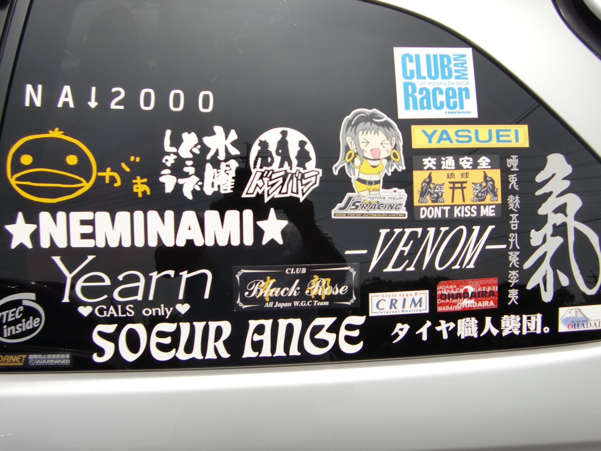 左リヤのガラスにステッカーを集中させていますが